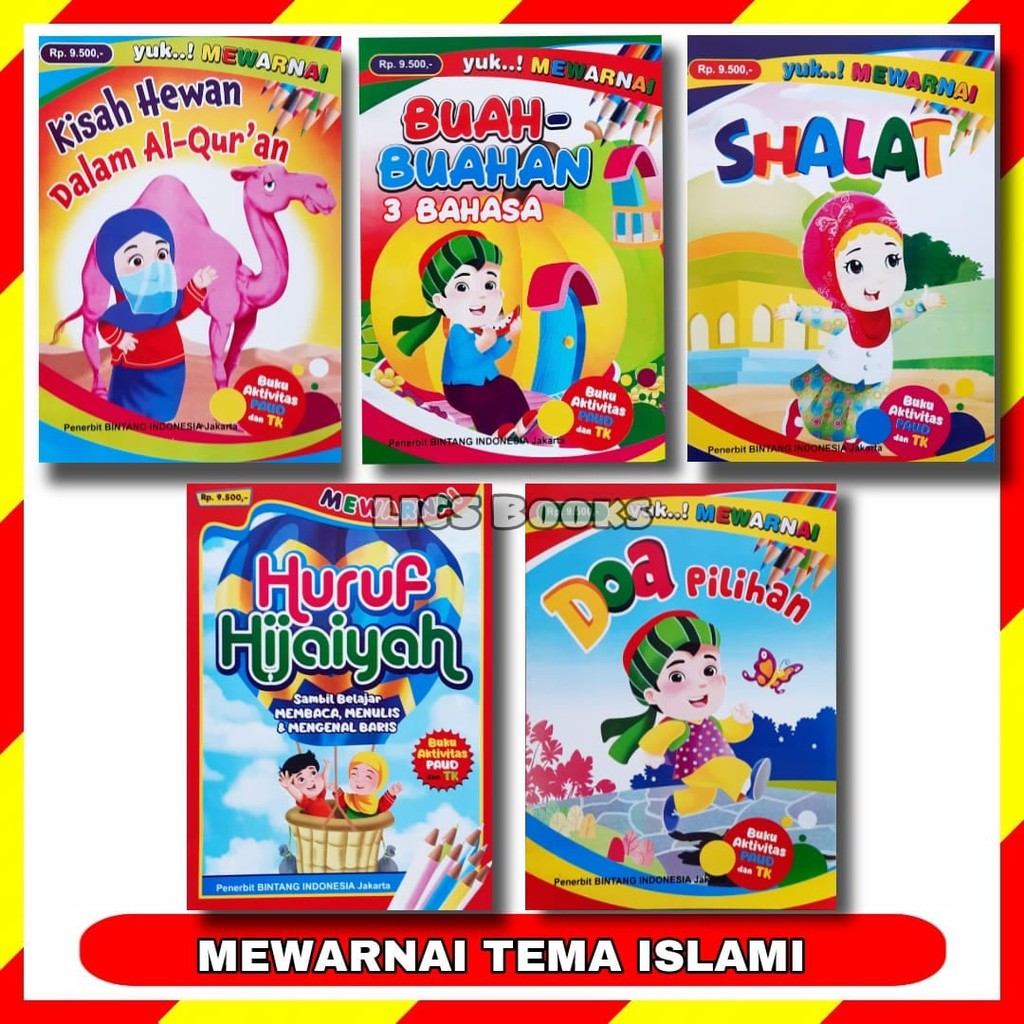 Gambar mewarnai kartun anak islami.